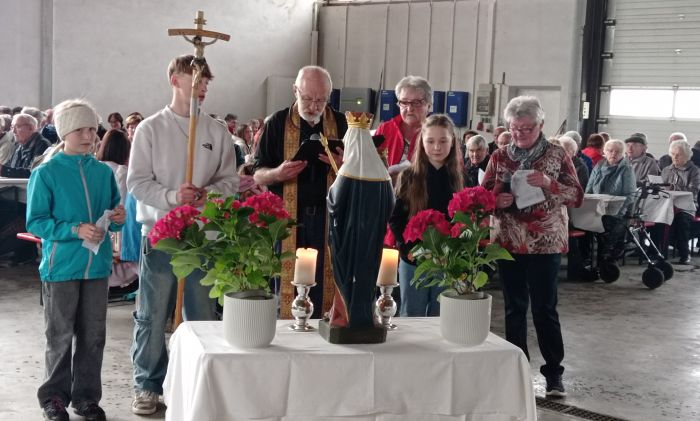 versammelten sich die Gläubigen vor dem Pfarrheim, wo Pfarrer i.R. Josef Helm