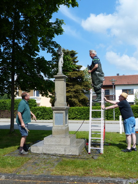 Schmutzanhaftungen und Überwucherungen gereinigt wurde. Alle drei freuten sich