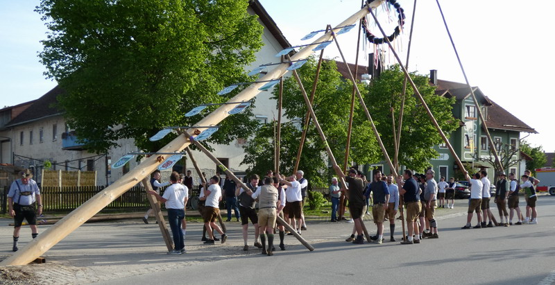 Baum. Nach dem Aufstellen traf man sich im Gasthaus Hagn zur zünftigen Maifeier,