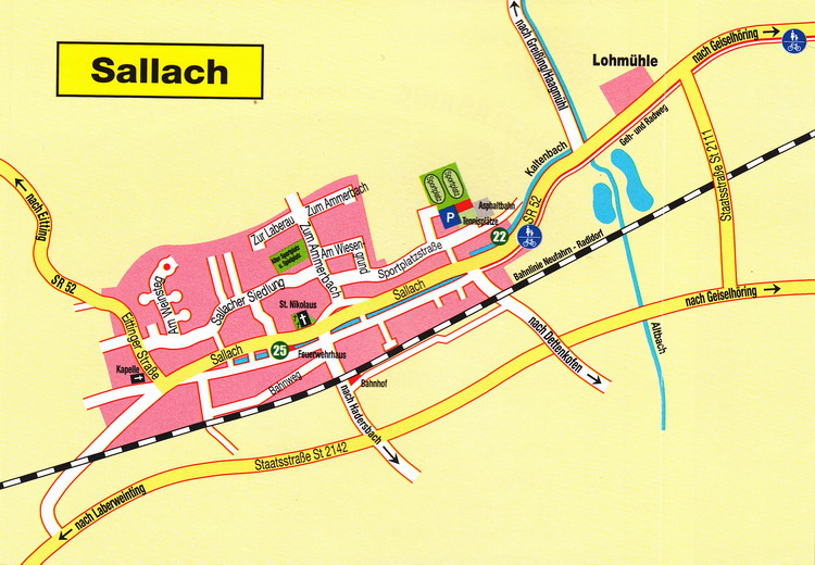 Sallach liegt in der Mitte des Dreiecks Regensburg - Deggendorf - Landshut an der Staatsstraße 2142 zwischen Straubing (BAB3, B8, B20) und Neufahrn/Ndb. (B15). Oder von Regensburg über Sünching kommend in Geiselhöring Richtung Mallersdorf/Landshut.