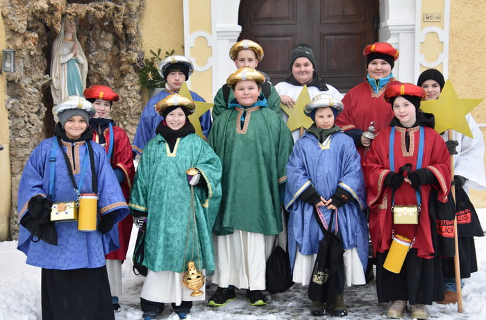 Sternsinger durch das Dorf. In Versform wünschten sie den Hausbewohnern Glück