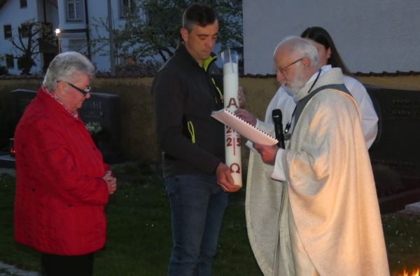 Dort entzündete er am Licht der Osterkerze die jeweiligen Tauf- und