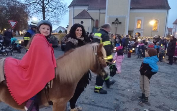 Pferd an. Stolz trugen die Kinder dabei ihre bunten Laternen mit denen sie auch