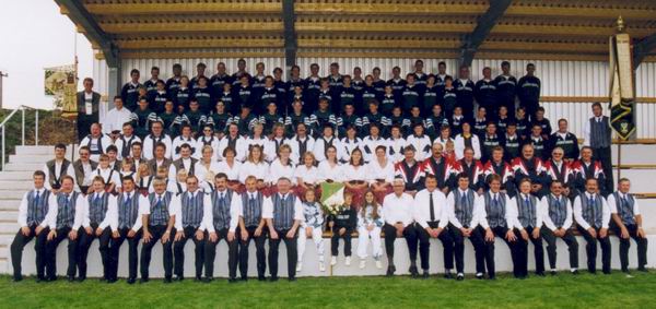 Blaskapelle „Grenzjaga“ in das große Festzelt am Sportgelände einzogen. Zum